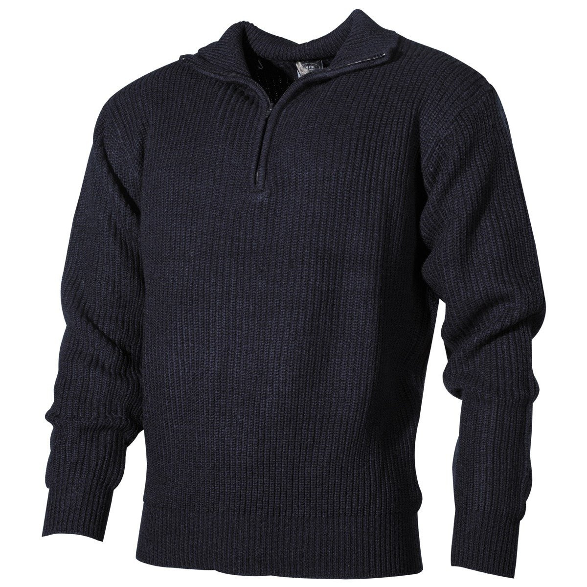 This is a high-quality sweater from the german manufacturer MFH® with a concealed zip on the collar and a coarse knit.