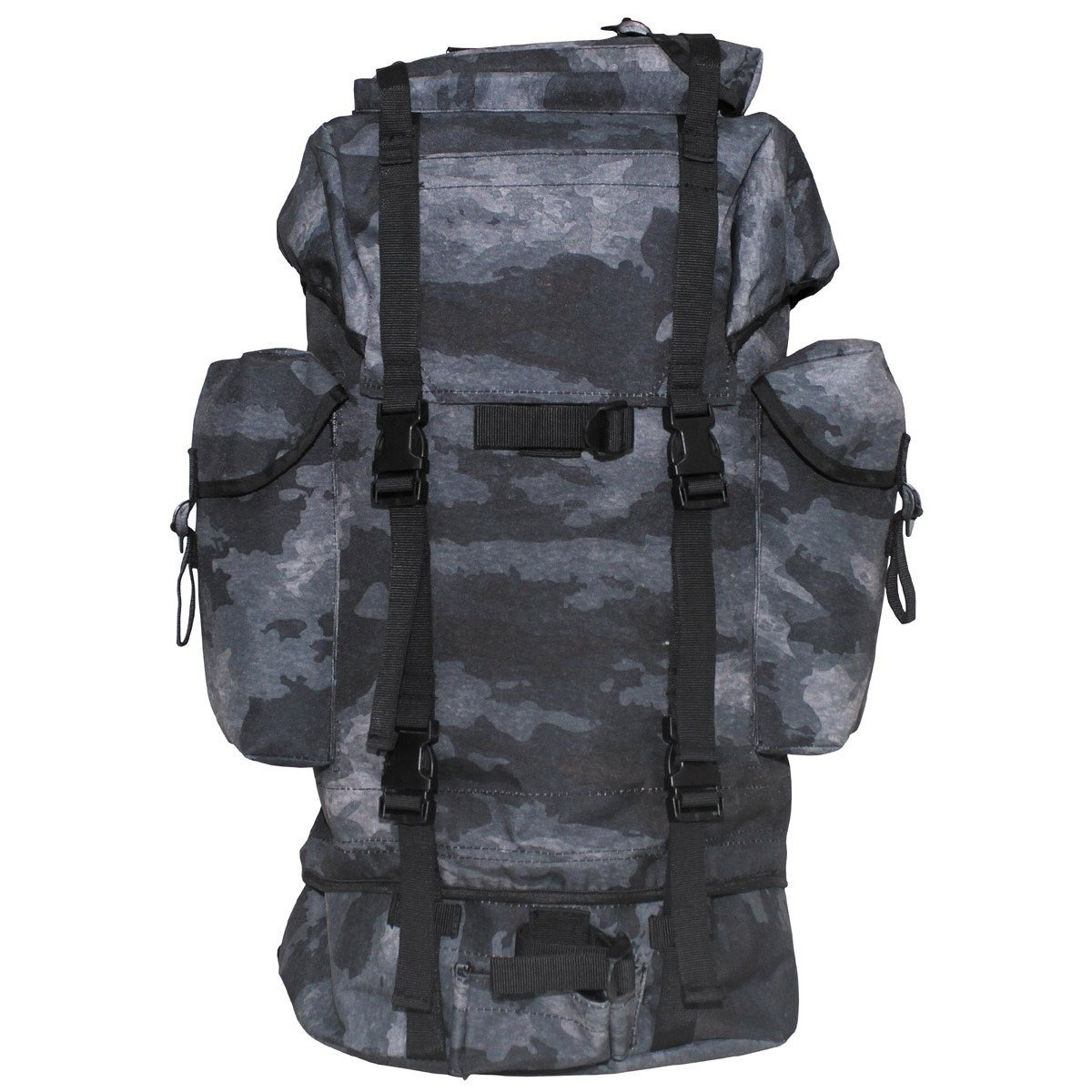 - lid with 1 attached pocket with flap and strap closure as well as 1 front slide-in pocket with hook-and-loop and 1 large zip pocket at the back