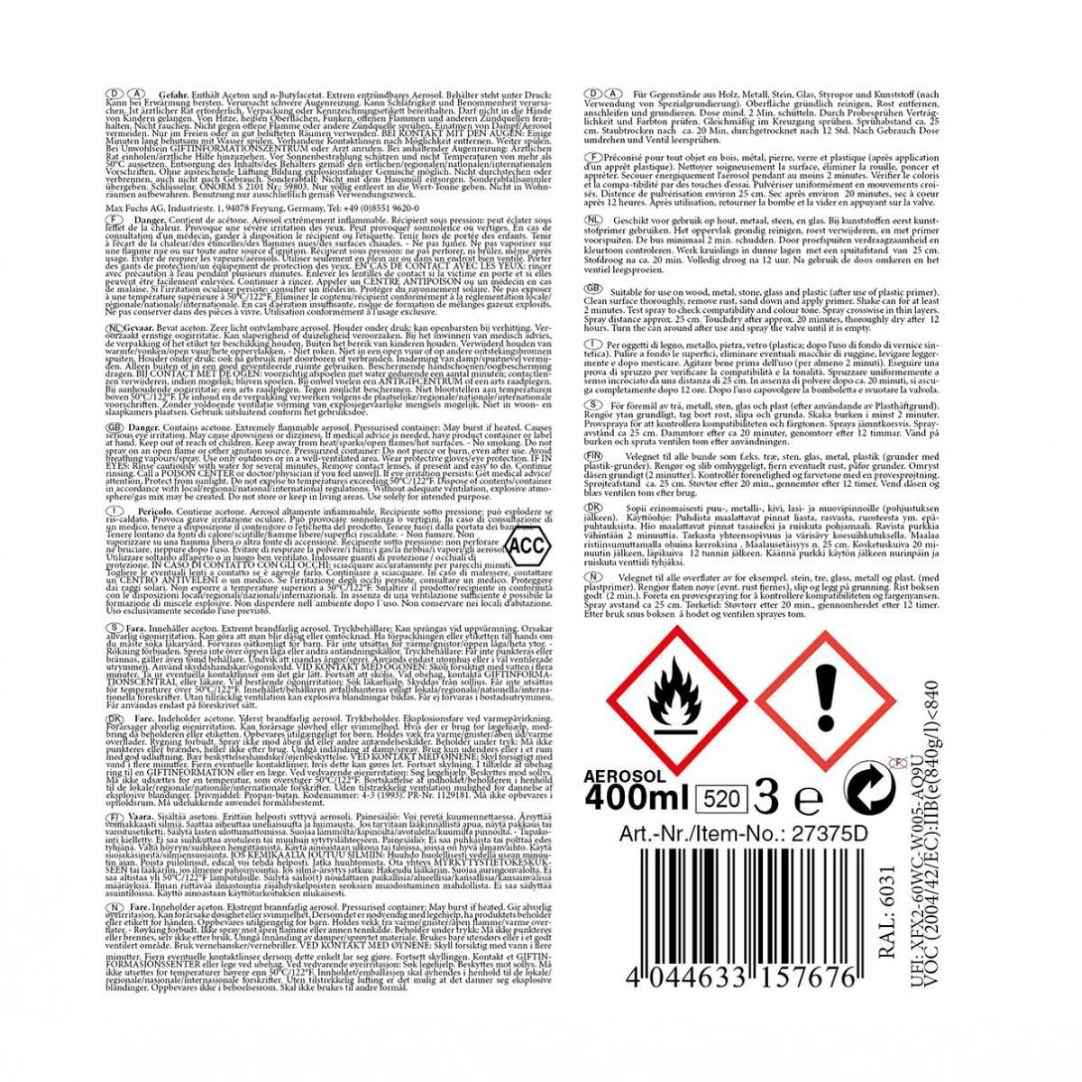 - contains: Acetone, n-butyl-acetate Hydrocarbons, C9-C10, n-Akanes, Isoalkanes, Cycloalkanes, <2% Aromatics- pressurized container, highly flammable!