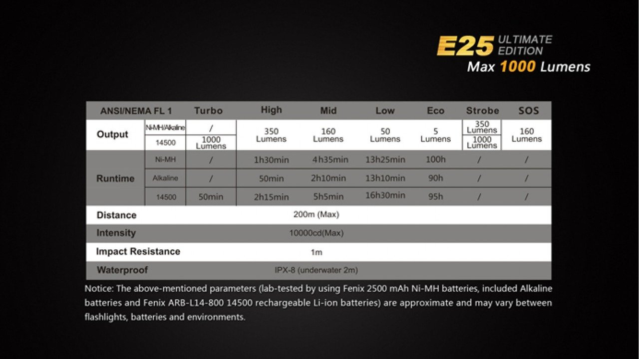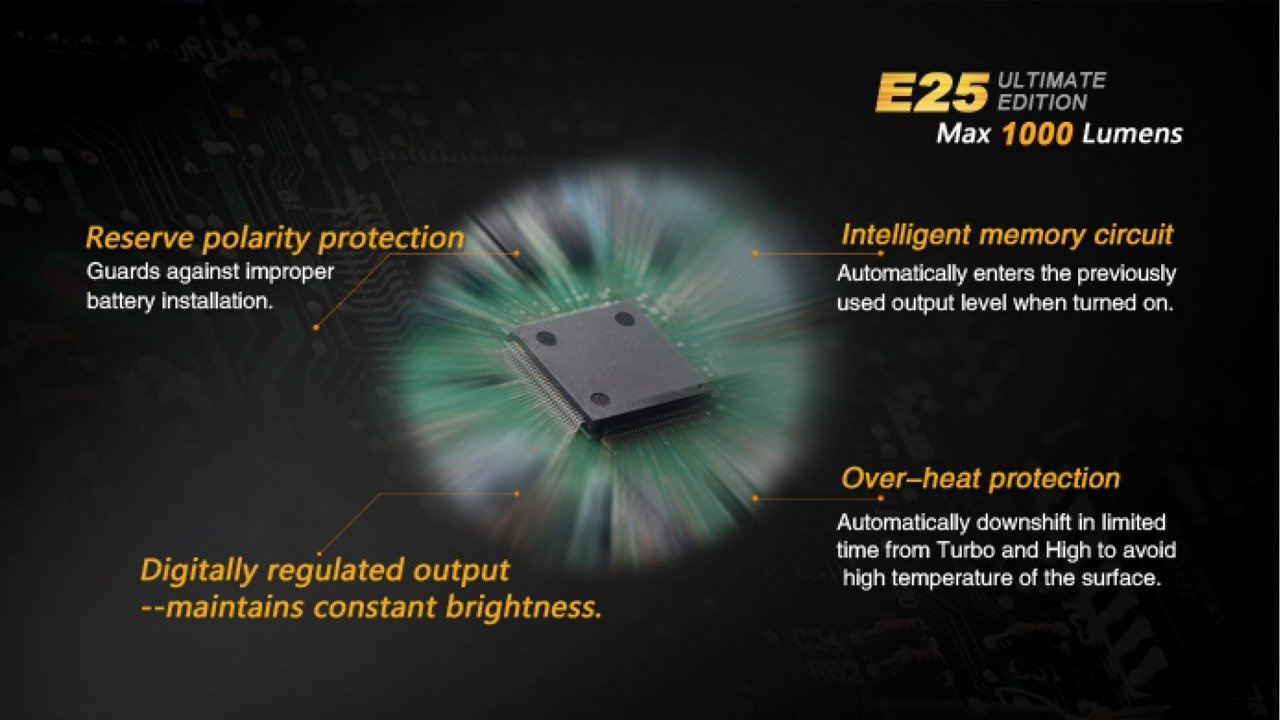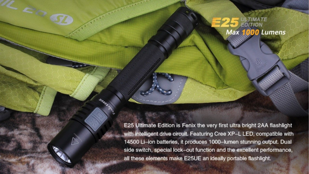 • E25 Ultimate Edition is Fenix the very first ultra bright 2AA flashlight with intelligent drive circuit.