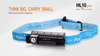battery, this extremely lightweight headlamp delivers a maximum output of 70 lumens. The HL10