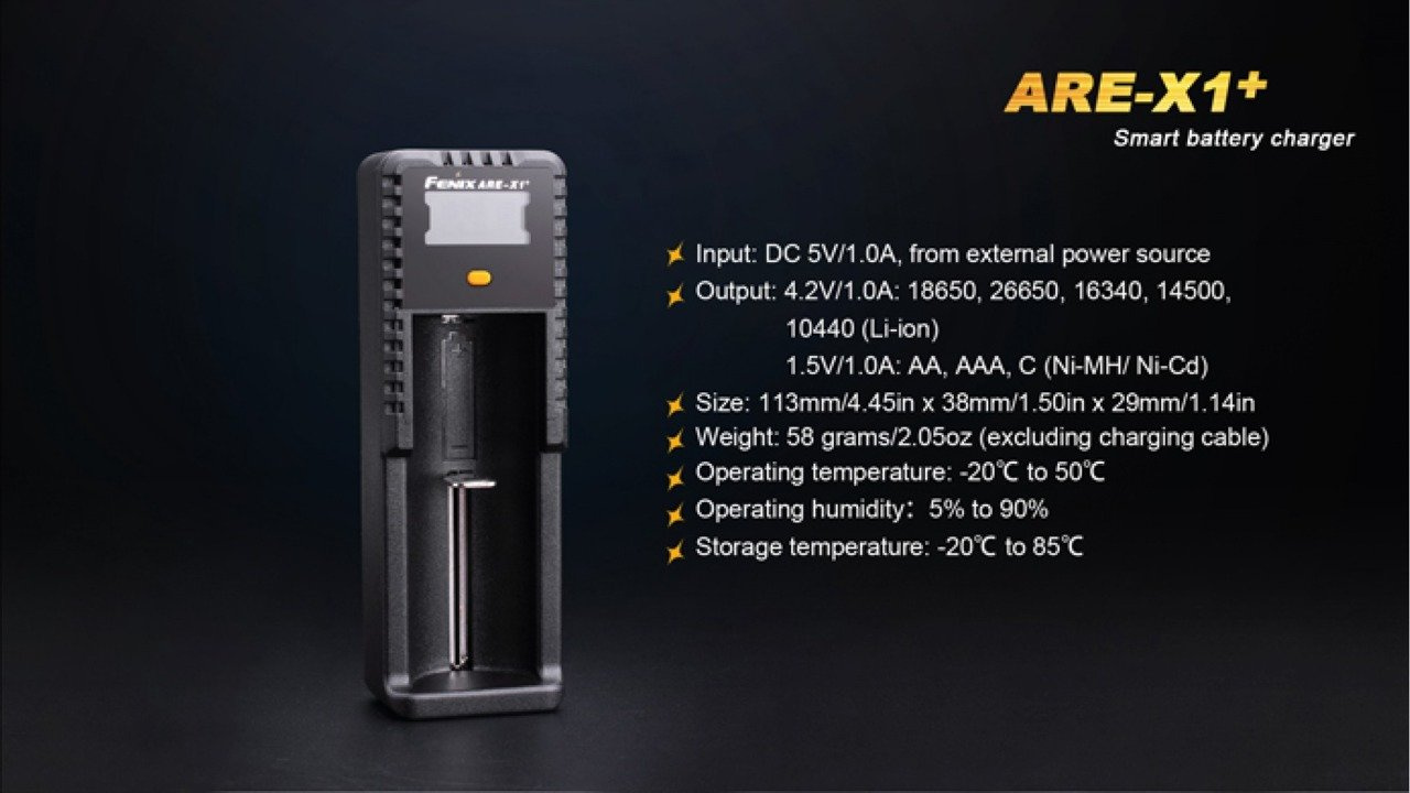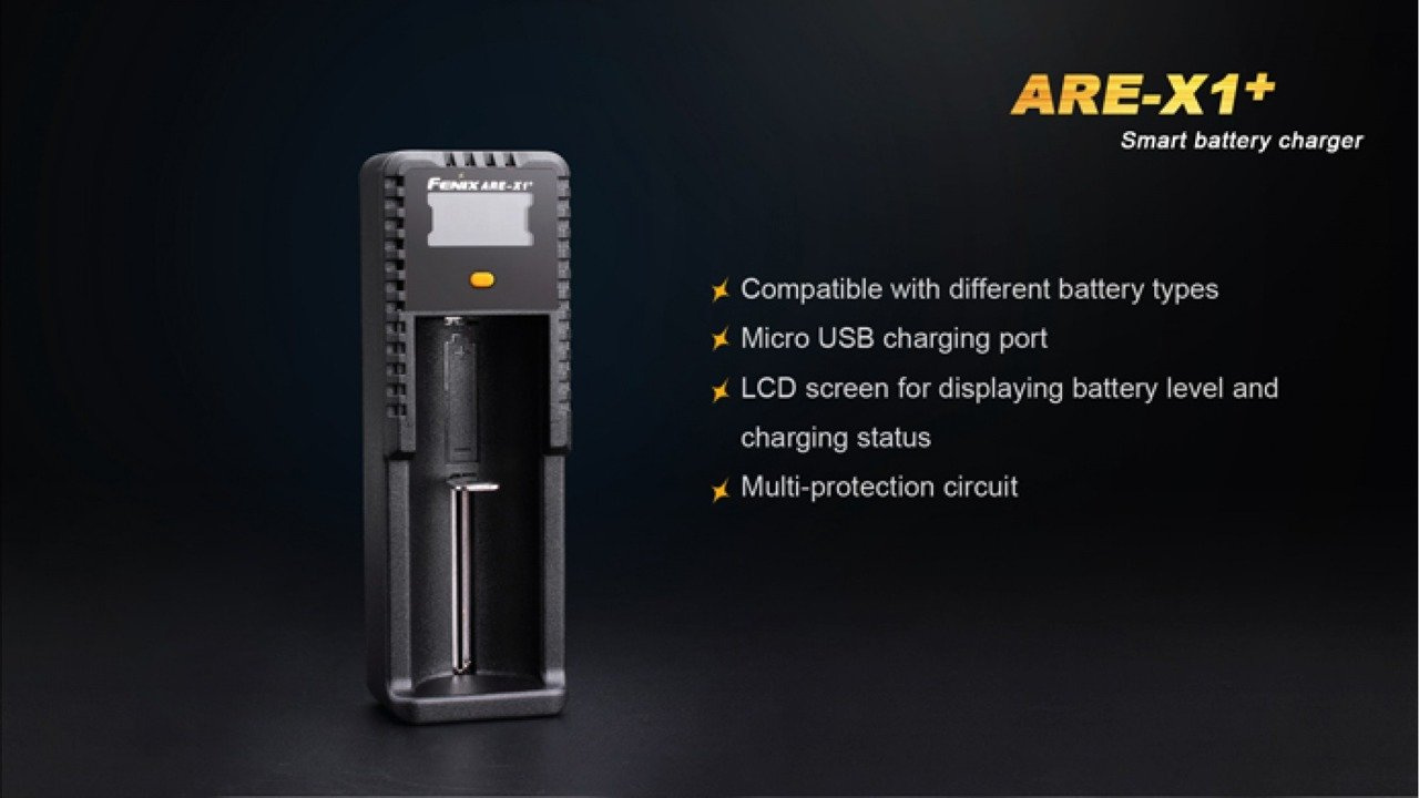 Fenix ARE-X1+, the single channel smart charger, is built for different sizes of rechargeable Li-ion batteries, as well as Ni-MH and Ni-Cd batteries. In addition, the micro USB charging port offers versatile universality. While charging, the user-friendly LCD screen indicates the battery level and charging status clearly. Built-in multi-protection guarantees charging safety.