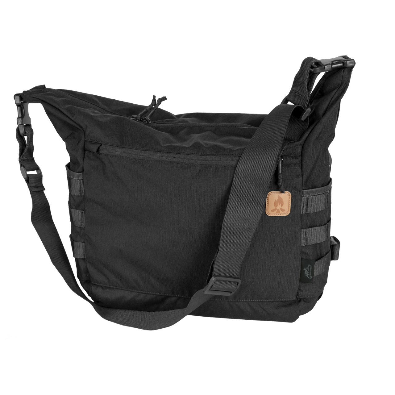 Bushcraft Satchel® is our general purpose field bag. May be used as a carry-all for one-day outing, or for every day urban activities. Extremely capacious. Main chamber comprises a zippered mesh pocket for valuable items plus two elastic drawstring pockets, e.g. water bottle holders. On the outside the bag has a large zippered pocket and two open pockets. MOLLE/PALS panels at the sides and bottom loops allow to attach additional pouches and items. Compression straps allow size adjustment.