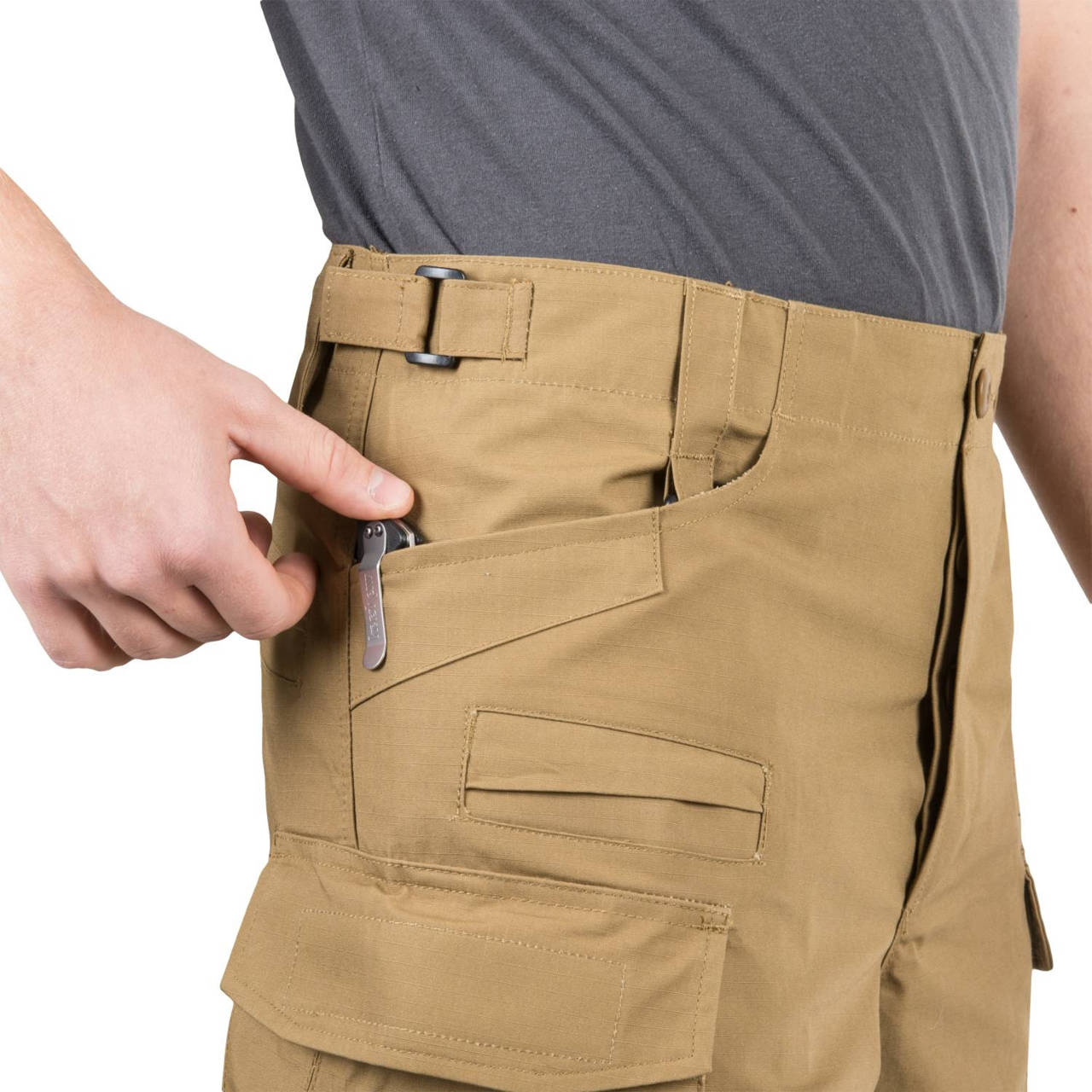 - additional compartments with elastic bands in cargo pockets for spare magazines, first aid equipment (combat gauze) or other small essentials