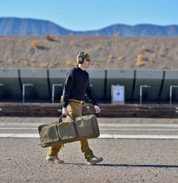 Double Upper Rifle Bag 18® was designed (as the name implies) to safely and comfortably carry a scoped AR-style rifle with an extra scoped upper, or two AR-style SBRs or two AKs in the basic configuration. The bag can be carried with four sturdy handles, or with detachable (and stowed in special pockets) shoulder straps. On the outside, there are three large pockets, each of them designed slightly differently. Each has a zippered pocket and velcro mounting panel to attach Versatile Insert System-compatible inserts. The main chamber of the bag has a ribbon loops system allowing velcro restraints to be placed anywhere they are needed to keep the weapon from shifting. Elastic loops would keep cleaning rods and cleaning accessories, and specially-designed restrain pockets would keep muzzles and buttplates securely in transport.