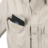This shirt is designed for law officers, operators, security personnel, and active persons who need garments combining functionality, tactical look, and esthetics. It is cut loose enough to allow movement, hide a low-profile body armor or IWB holster. The fabric is breathable and dries quickly. Front stiffener under the collar prevents collar rolling – it would stay neat even under duress. The button slat has an eyeshade holder.