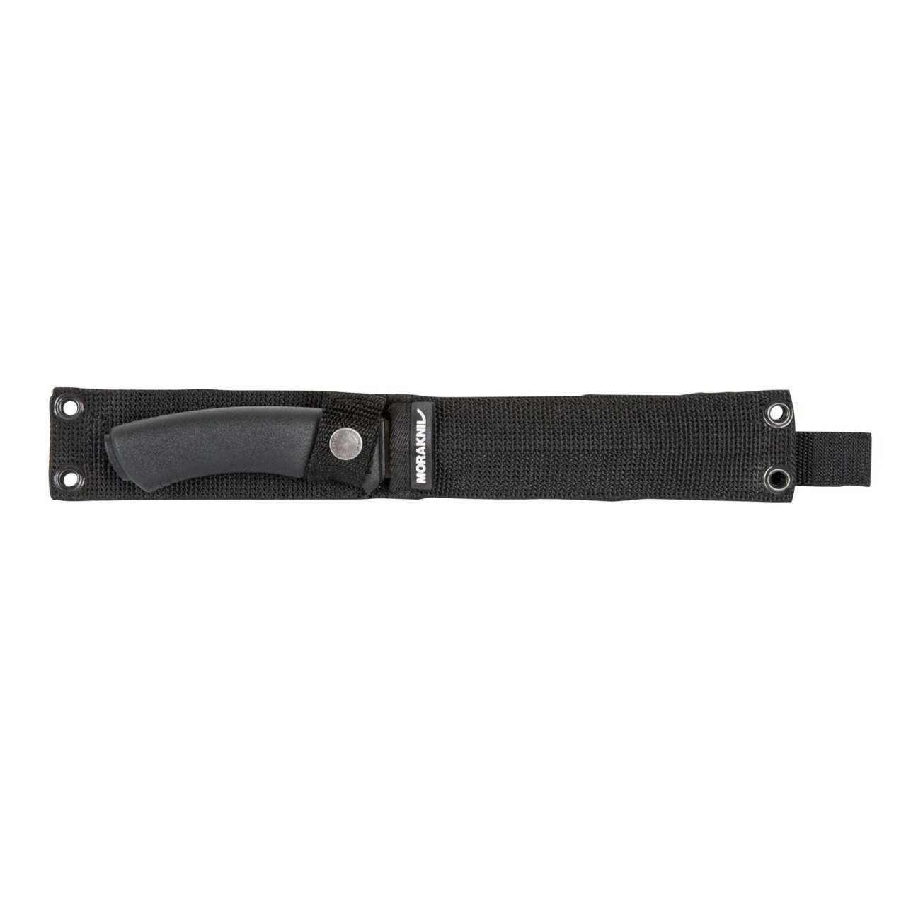 High-quality knife from Morakniv® with an extra-long blade made of carbon steel. The extra-long blade is 170 mm, 3.2 mm thick and has a black anti-corrosive DLC coating. Its spine is ground especially for use with a fire starter and has a MOLLE compatible sheath of heavy-duty nylon.