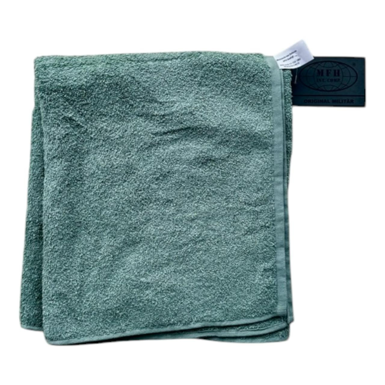 NL towel, terry cloth, used, od green and blue