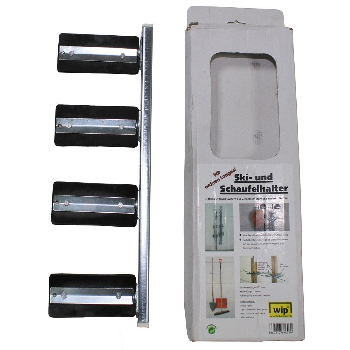Ski and Shovel holder, "Wip", individual adjustable