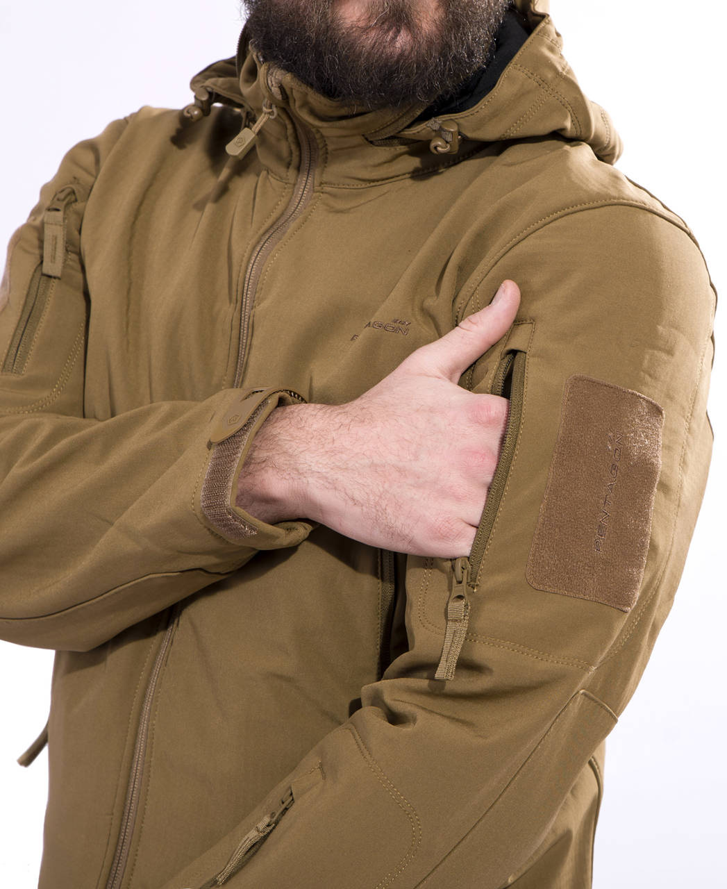 The hidden hood in the collar is easily accessible and 3-point adjustable. Large chest pockets with inner compartments for your daily utilities, available earphone cable exit port on the right chest pocket. Arm pockets with Hook n Loop patch 7 cm x 13 cm for your insignia. Under arm ventilation with insect blocking mesh 2 inner chest pockets for documents and a large dual entry back pocket for larger accessories.