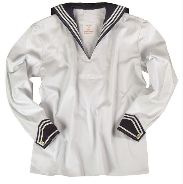 - sleeves with blue-white cuffs and gold buttons with anchor theme