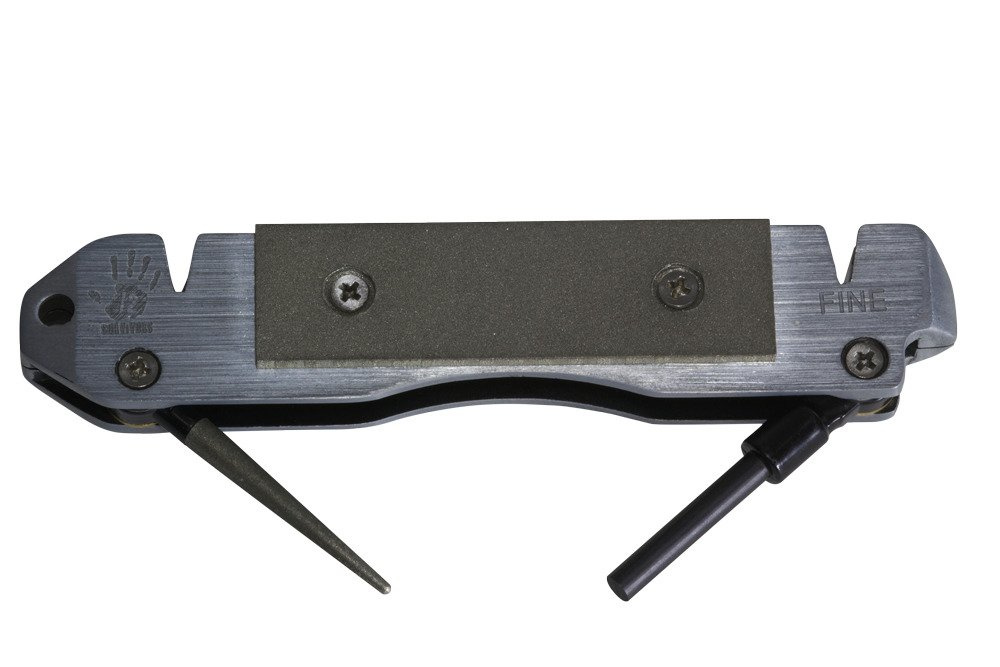 A unique tool for any outdoor adventure or survival situation, this compact, two-in-one device provides the components needed to sharpen your blade and start a fire. The 12 Survivors™ Sharp & Spark is equipped with four sharpening methods to quickly sharpen a dull blade: