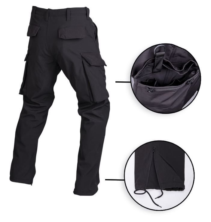 - comfortable to wear, water-repellent softshell pants with soft fleece lining