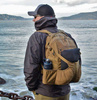 Quick and easy accessibility of essential items was the focal point of the design work. The main chamber has got a velcro panel to attach inserts compatible with our Versatile Insert System®, an elastic band cuffed pocket, and a zippered one. The organizer pocket for small items is situated at the top of the backpack and is accessible without the need to open the main chamber. The front of the pack has a soft-lined sunshades/electronics pocket, and velcro panels allow to attach additional Versatile Insert System® - compatible inserts. Two open top side pockets carry windshirt or water bottle. The front is covered with a so-called Beaver tail panel, which holds a biking, climbing, or tactical helmet. If the backpack is used simply as an EDC item, the flap can be simply rolled and secured, to avoid having to unbuckle it every time to take something out. The backpack is fitted with comfortable, profiled straps, a rigid back panel as well as a hip belt.