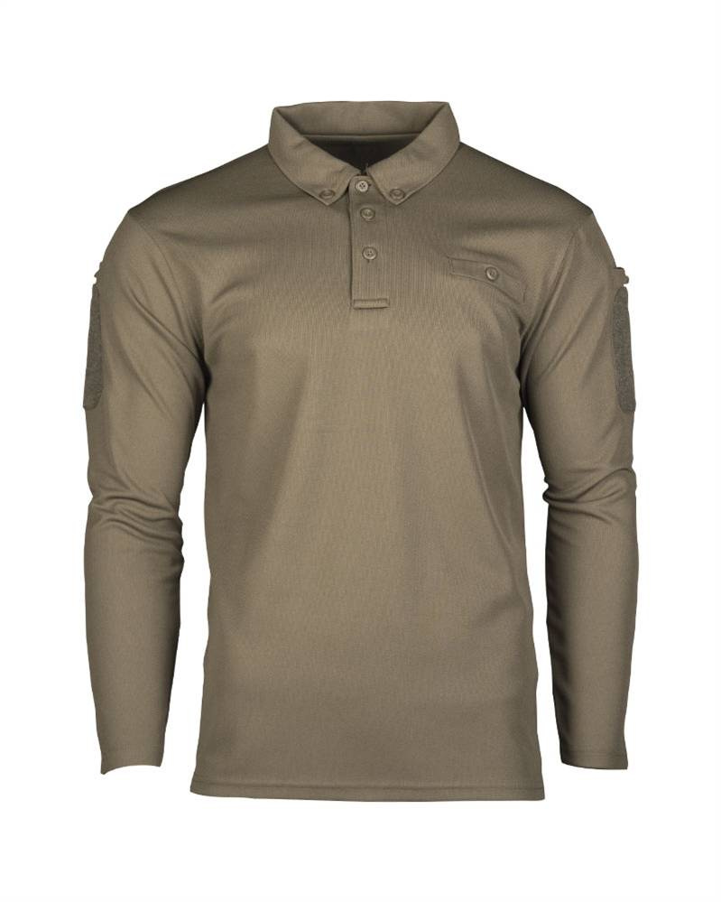• High-quality tactical polo shirt from German manufacturer Mil-Tec® with an athletic fit and long sleeves, made from quick-drying, breathable fabric.