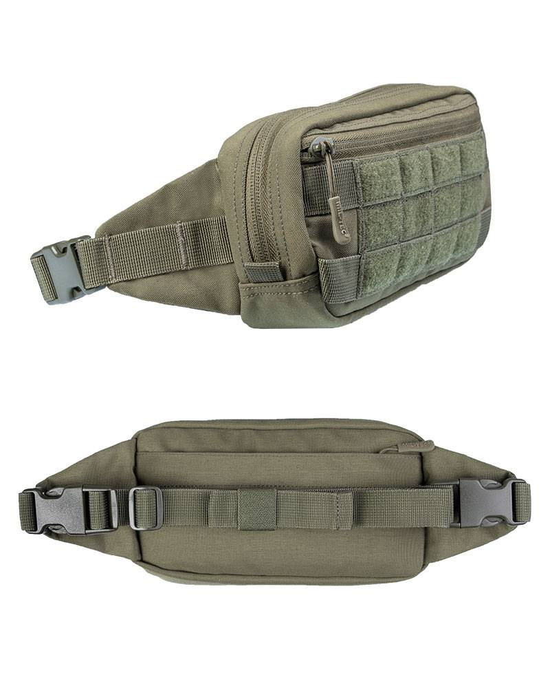 - small, compact fanny pack with Molle loops on the front pocket