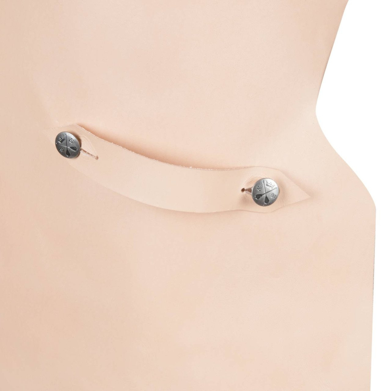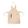 High-quality apron from Morakniv®, cut by hand from natural Swedish leather from Tärnsjö. The apron has a holder for a sharpener and one for a kitchen towel, made from the same leather as the apron.
