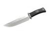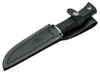 This hunting knife series from Muela has as a consistent feature extremely non-slip handles made of plastic elastomer, which for years has enjoyed great popularity among all knife users for whom the functionality of the knife is the most important criterion. Not only in wet conditions but also in very cold weather or when wearing gloves, plastic elastomer grips much more securely and offers considerably more grip than classic handles made of natural materials. In addition, of course, the resistance to wetness is also much higher. A stainless steel paring element closes the handle to the blade. It is supplied with a black leather sheath. A hunting knife for larger games, also suitable as a compact outdoor knife. Clippoint blade.