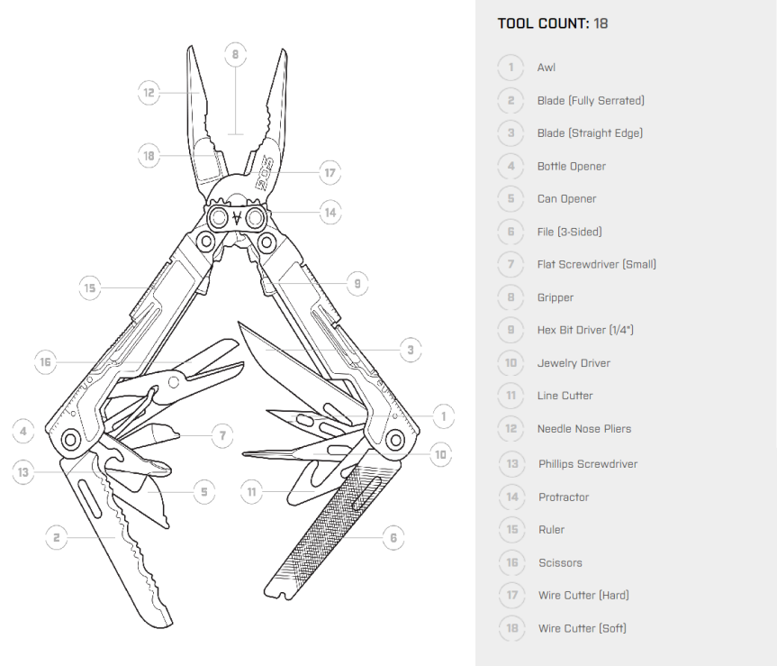 Great multitool, sturdy and very well done, really pocketsized, if you have big hands it's not for you... compared to leatherman wave it really small... but it worts the money.