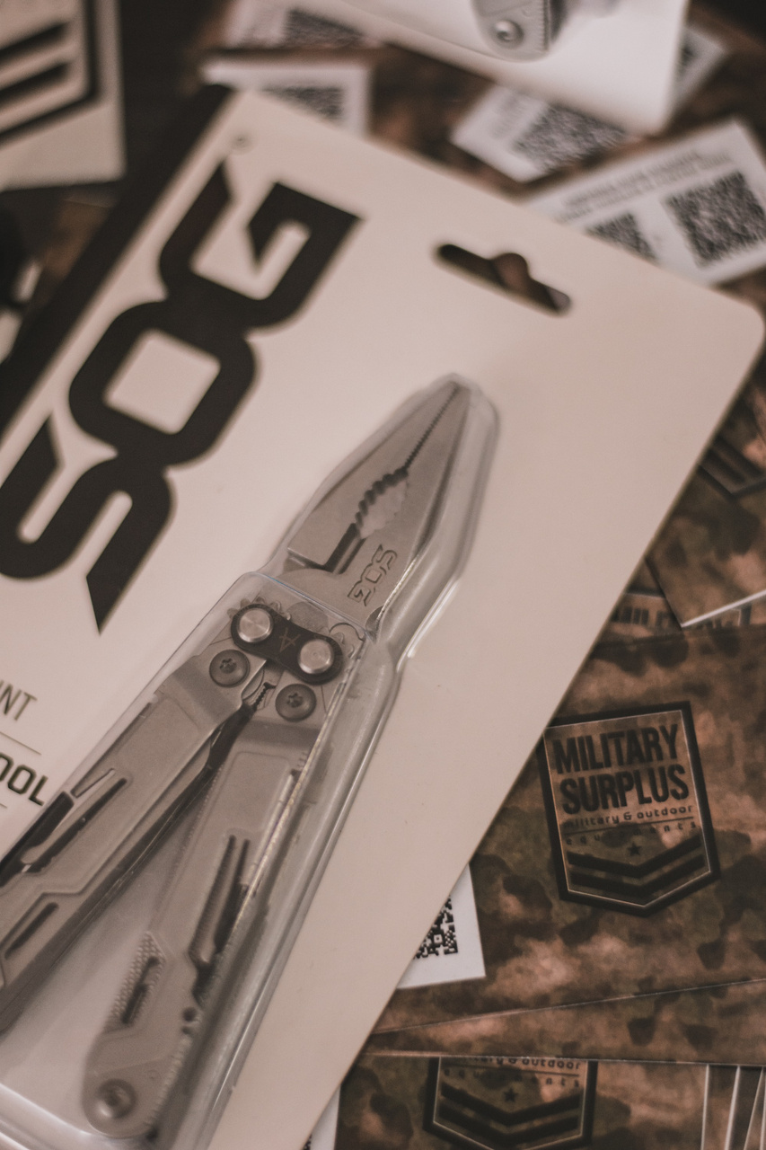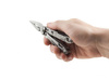 The SOG PowerPint is a fully equipped multi-tool that surprises with its light weight of 119 g given the wide range of functions and sturdy construction. The pliers head with a powerful gear rim has flat front jaws to work as needle-nosed pliers, then the gripper for working with hex screws, pipes, and cap nuts, and lastly hard and soft wire cutters. The 16 locking tool functions also include: Serrated sheepsfoot blade (5.7 cm), scissors; line cutter, Phillips screwdriver #1, awl, jewelry driver, small flat screwdriver, file, hex bit driver (1/4"), ruler (inch/cm), can and bottle opener.