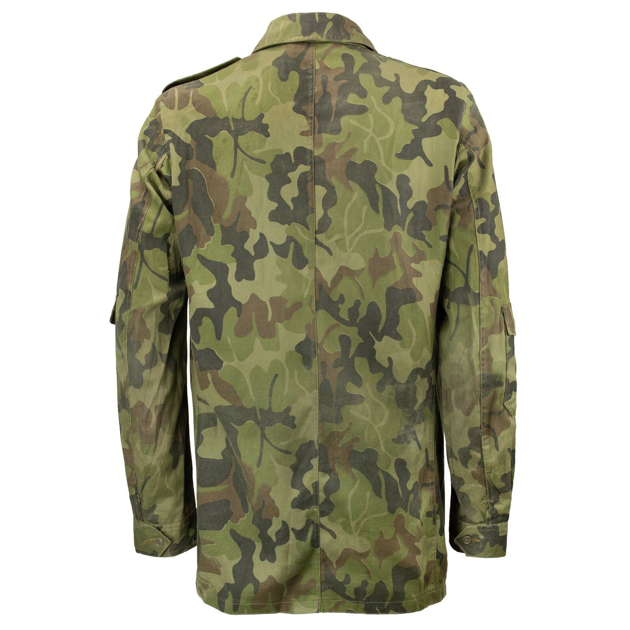 Original Romanian M93 battle dress uniform jacket with a genuine camouflage pattern called "leaf" this pattern was issued to all military personnel in the 90s.