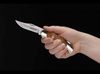 The Boker Optima is a Pocketknife that can take rough handling and use. The exceptionally thick blade made of 440C is stainless, hollow ground and securely fastened by the Backlock. The blades of the Optima series are all exchangeable, so that the knife can be quickly adapted to the respective requirements. The exchange-blade system transforms this one-part knife into a multi-functional knife. The handle body is sintered from a piece of nickel silver, the scales are made from exotic Thuja Wood.