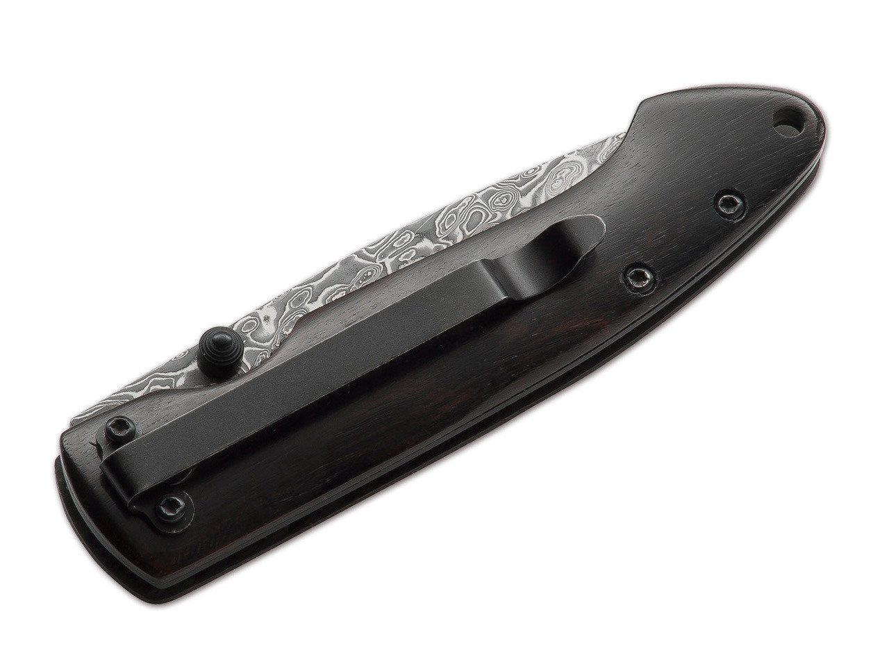 The Boker Plus Damascus Gent II is a classy gentleman´s knife with just one steel liner. The extremely light and slim design is comfortable to carry. The dark ebony and attractively grained Damascus blade with 67 layers creates a simple, yet stunning, elegance. The smaller version offers even more comfort but has the same, exclusive features. The blade is Locked by a Linerlock. With removable clip (tip-down).