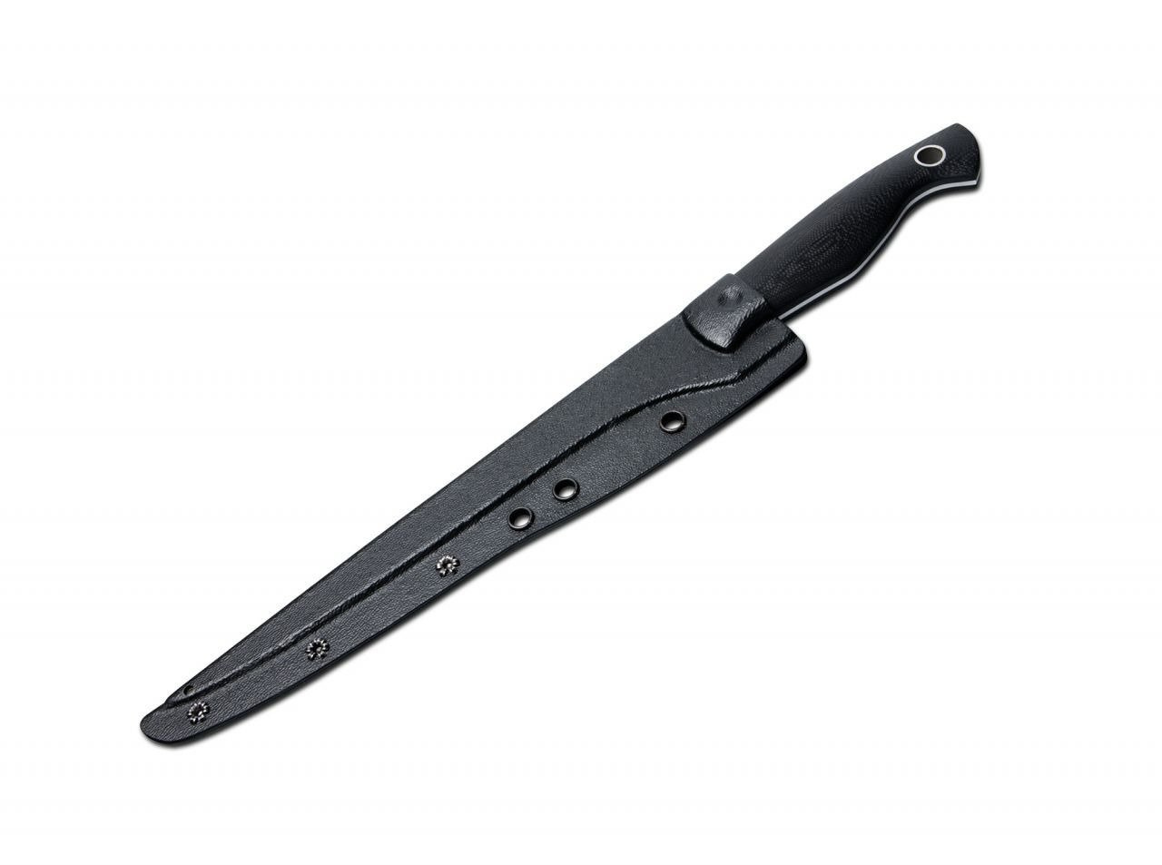 It is no secret that the genes of our Sage series chef's knives have their roots in the outdoors. For his design, Jesper Voxnæs taps into the extensive experience he gained with his countless outdoor knives. As a result, the Saga filleting knife is a valuable aid not only in the kitchen but also on any fishing or hunting trip. The contoured handle with its G10 scales provides outstanding handling, while the exceedingly flexible blade made from edge-holding 440C leaves nothing to be desired. The knife is given unconditional outdoor utility with the included kydex sheath with belt adapter for a secure carry. Stonewash finish blade.
