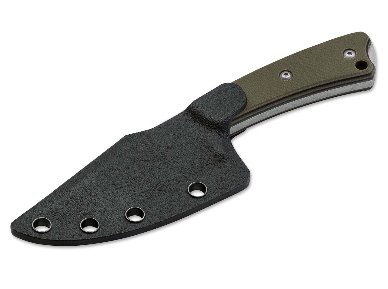 Piranha by Scott McGhee is a compact, versatile, and durable outdoor knife that can be carried as a neck knife or on a belt using the included adapter. The full tang construction remains exposed at the end of the handle, allowing for convenient use of a fire starter when hiking or camping. The sturdy clip point blade is the ideal size for most outdoor activities, while also being small enough to provide extremely comfortable everyday carry. The handle features two-color G10 inserts for a secure grip and stability in use. Comes with a Kydex sheath and small adapter for belt carry.