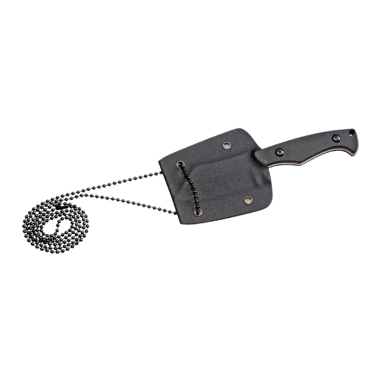 The Magnum Challenger is a compact neck knife with a sturdy Wharncliffe blade, suitable as a small EDC or as a compact backup knife. The slim tang construction is flat, and compact, and offers excellent comfort and portability. The partially coated 440A stainless steel blade has a striking two-tone finish; the handle scales are non-slip G10. Comes with a handy Kydex sheath and ball chain.