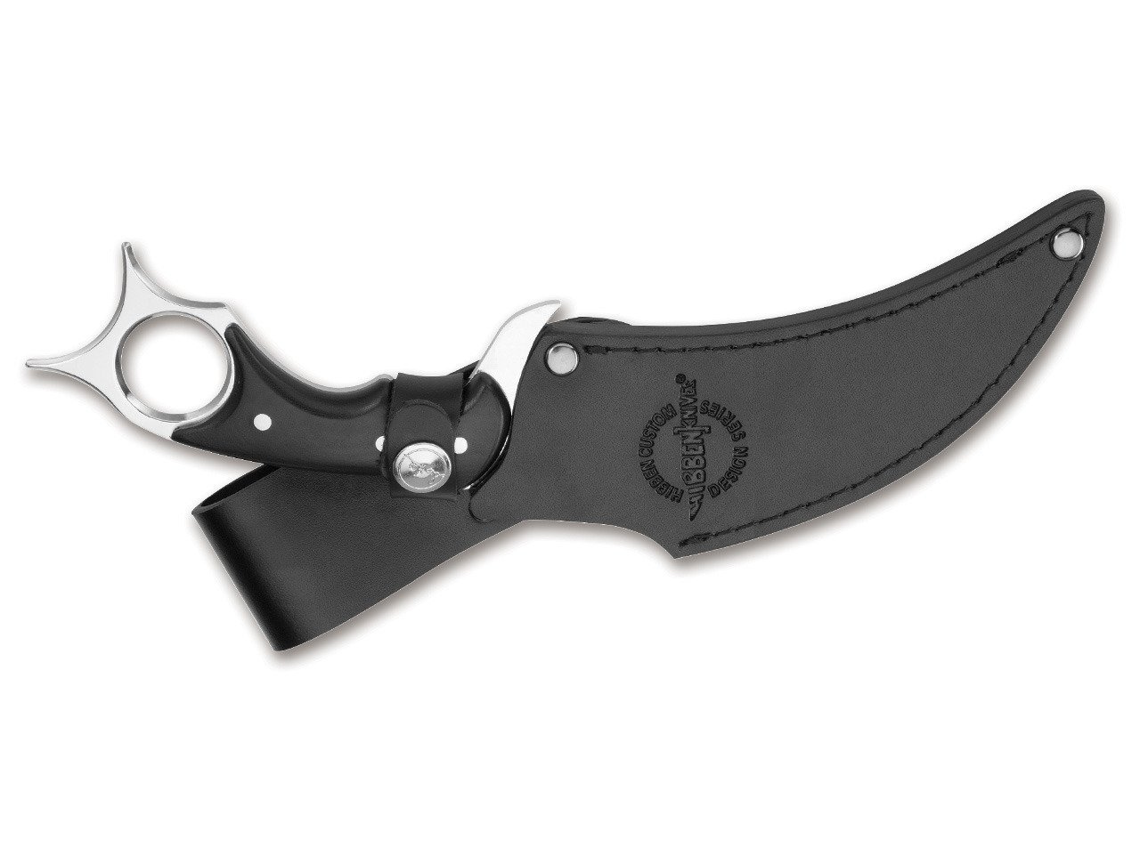 Gil Hibben's incomparable talent for presenting the world of knives with unique designs and his characteristic handwriting is also convincingly demonstrated with this knife, Karambit. The extremely sharp blade continues into the curved side, which also determines the knife's unique position in the hand. The contoured Micarta handle and finger slots maximize the safety of the handle. Comes with a leather belt sheath.