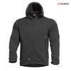 100% polyester 140Gsm Fleece Hoody with a natural knitted wool appearance texture and fine inner fleece backing, hand and arm pockets are seamlessly bonded with hard-shell fabric.