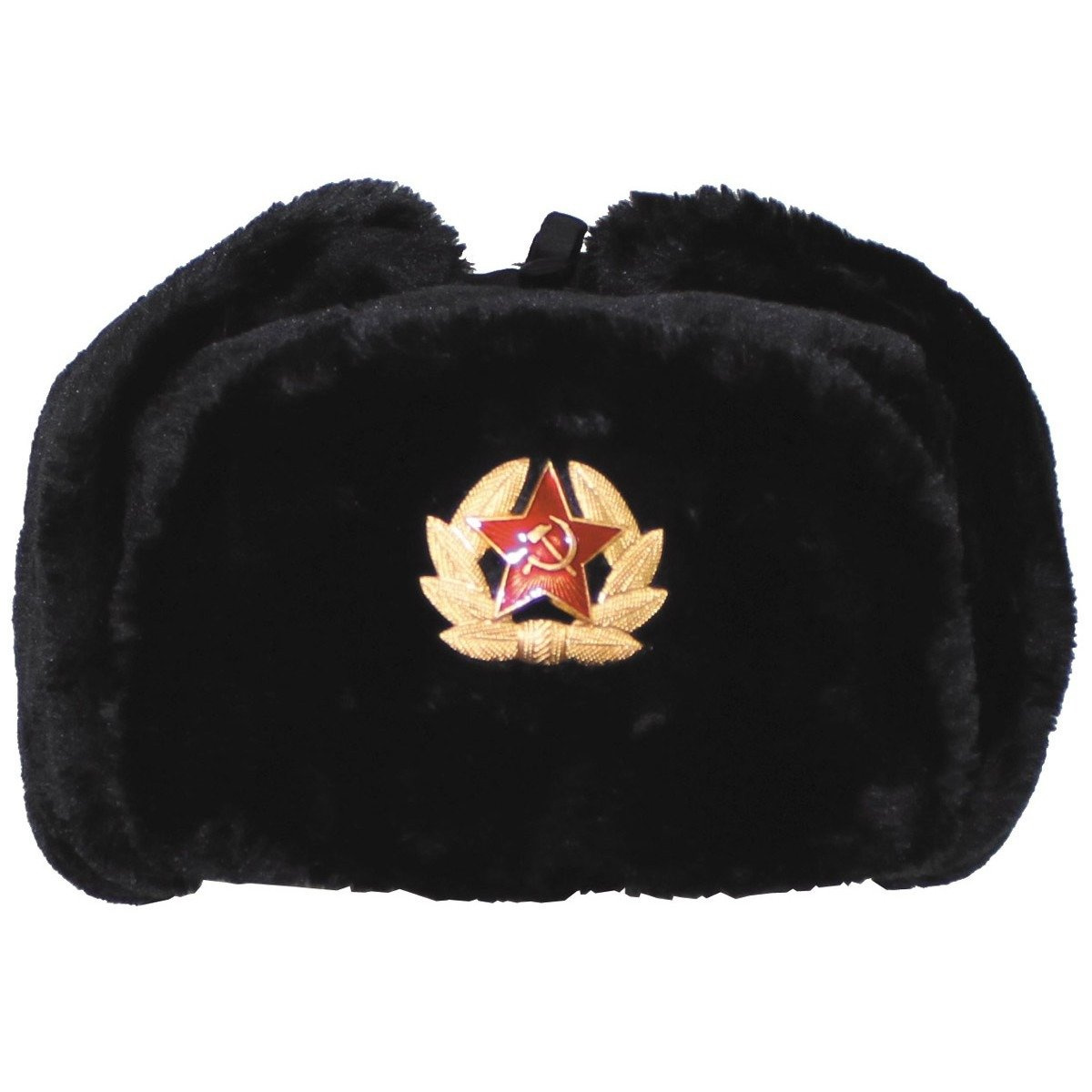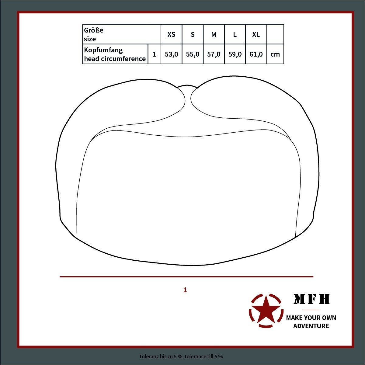 with ear flaps, chin strap and flap on the forehead (sewn)