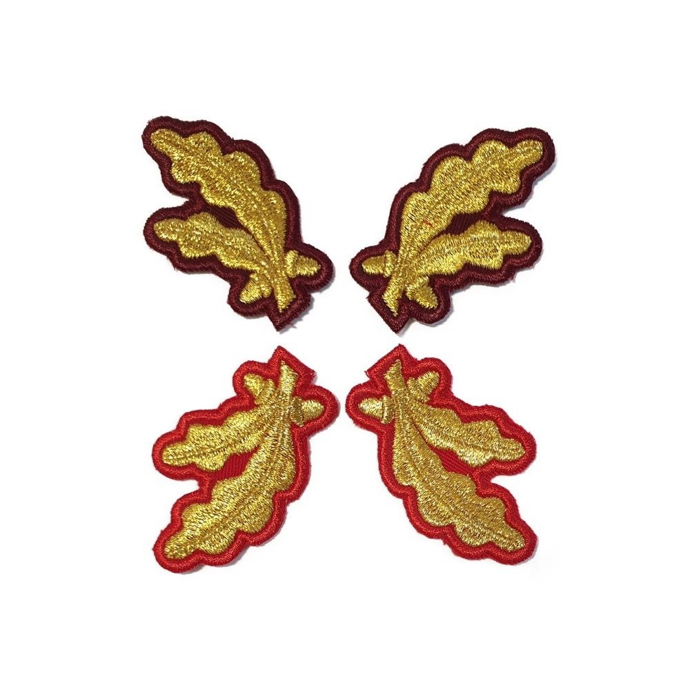 Brodate cu fir metalic auriu pe suport din paspoal de lana la culoarea fiecarei arme/specialitati.