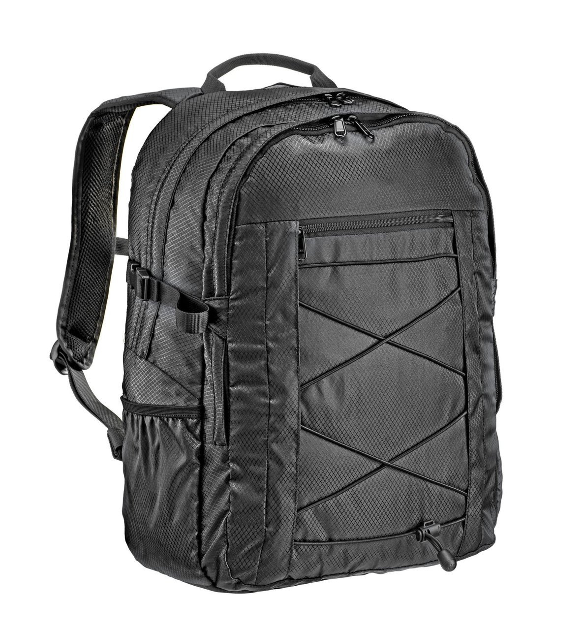 Backpack designed for multiple uses, suitable for work, school and outdoor activities. It features two very large main pockets, one features a 13” laptop, tablet or water bag and a second one with an additional pocket and an organizer. There are three other pockets, one on the front for objects and two bottle holders on the sides. The backpack also features a ventral belt, a sternal sling, shaped and padded shoulder straps and a padded back panel with a vertebral column channel and a PE layer for greater back support. Furthermore, the honeycomb weave makes it elegant and suitable for any outfit.
