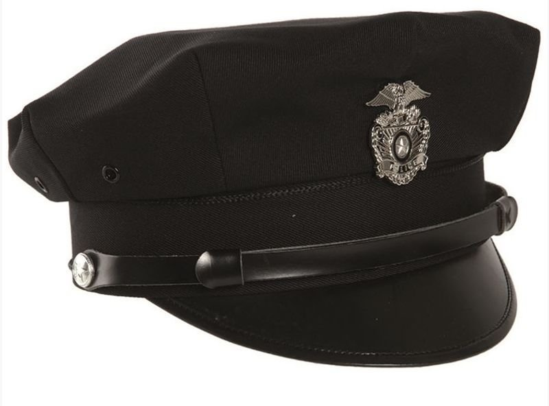 - peaked cap of the US Cops in the typical eight-sided shape