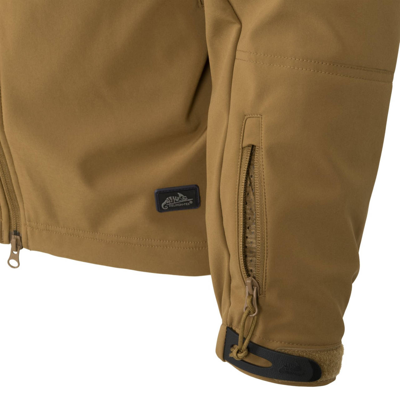 - Zippered lower left sleeve pocket