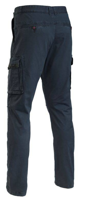 Cargo pants with 2 front pockets with reinforced edges, 2 large side pockets and 2 backpockets with button fastening.