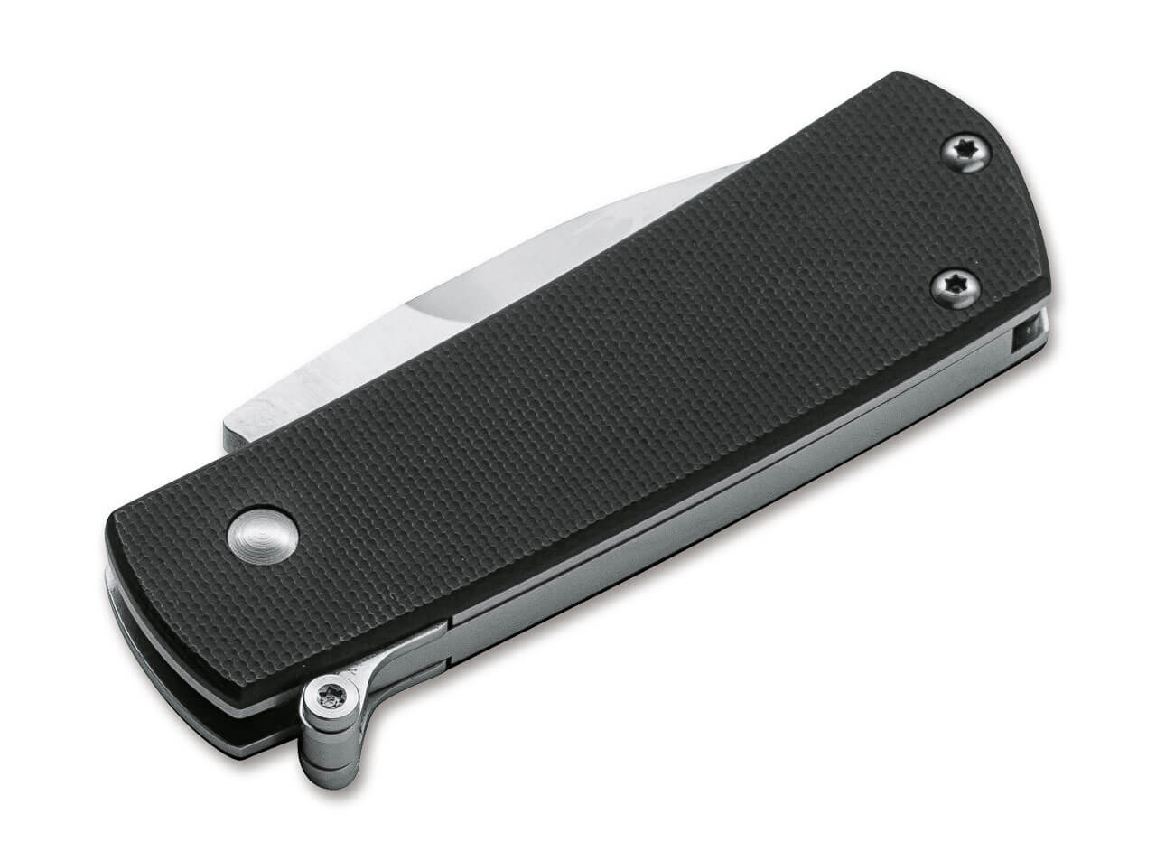 The smallest version of the Boker Plus Urban Trapper by Brad Zinker is now available with an additional locking mechanism thanks to the new patented wire hanger backlock. Due to the space-saving wire hanger, no additional upper spring is needed any more, which gives the blade considerably more space in the handle. The blade made of VG-10 with a fine hairline finish is equipped with a nail nick for two-handed operation. The noble handle scales made of selected cocobolo wood emphasise the noble character of this extremely light gentleman's knife. With deep carry clip (tip-up/r) and a high-quality nylon case.