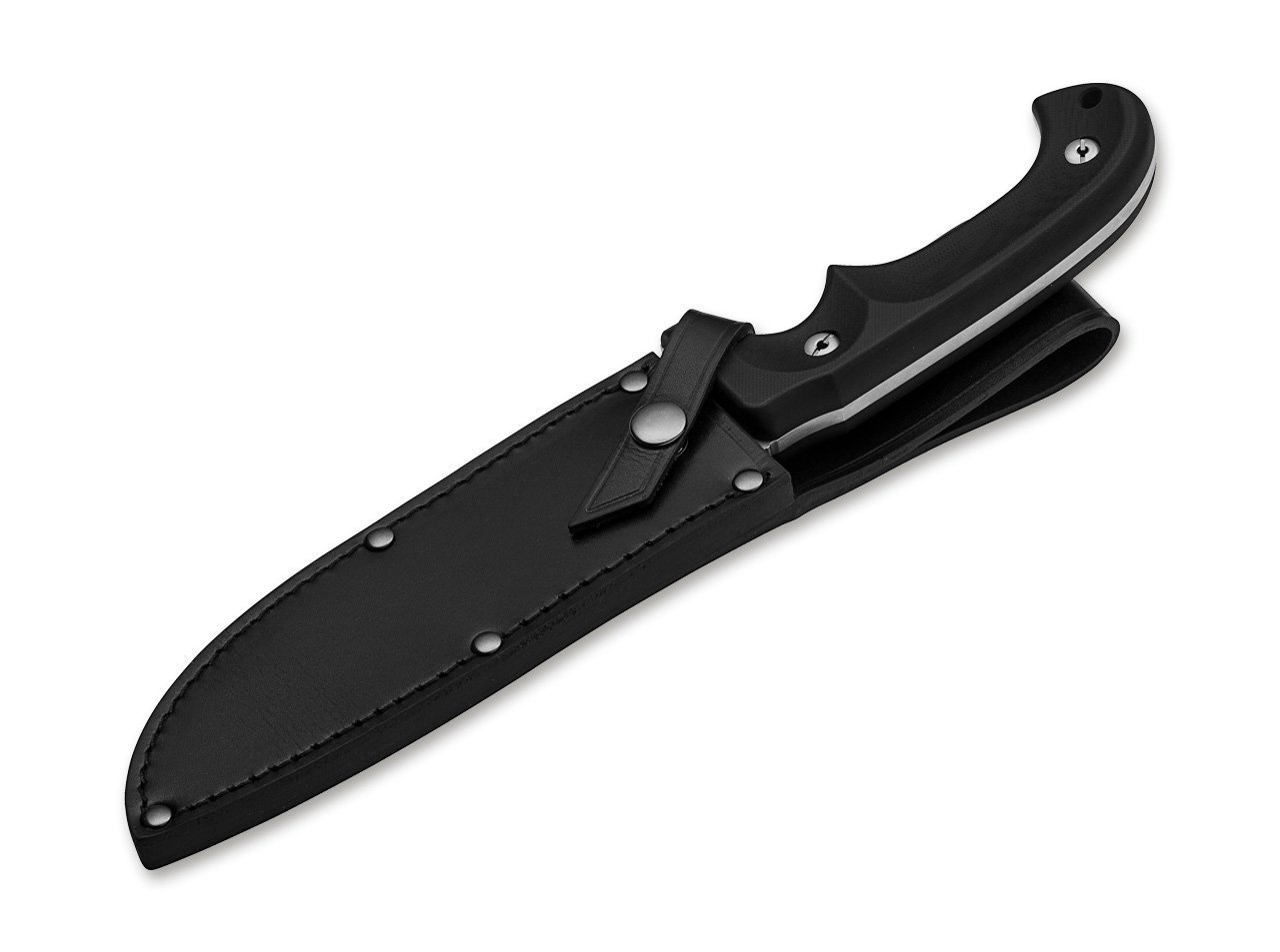 For the first time, we are using a solid spearpoint blade made from 5 mm thick D2 in the Magnum Collection series, giving the knife the practical properties you can expect from a true utility knife. The knife has a long ricasso, a pronounced fuller and a ridged thumb rest. The combination of stonewash and satin finish makes the blade scratch-resistant and improves its corrosion-resistance as well. The solid full-tang build gives the Magnum Collection 2020 balance and stability, making it a reliable tool for any occasion. The handle scales of textured G10 are sandblasted to a matte finish, creating an interesting contrast to the blade. With a lanyard hole and black leather sheath. The Magnum Collection 2020 is strictly limited to 1,999 pieces worldwide. It comes in an exclusive collector´s box with a certificate of authenticity.