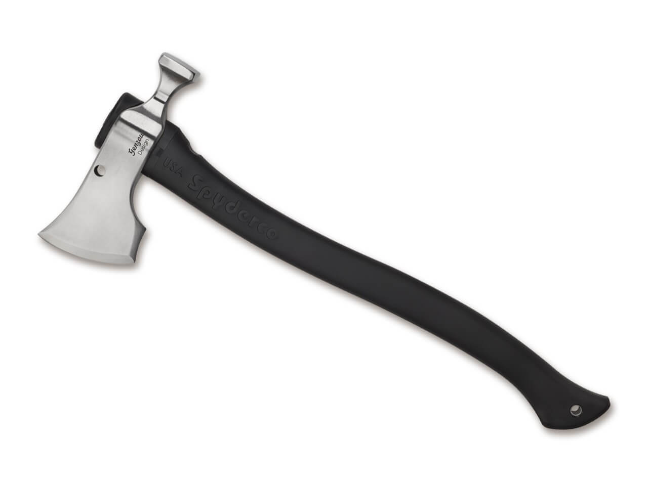 The Spyderco HatchetHawk, designed by the German outdoor enthusiast Martin Genzow, combines elements of the classic Franziska with those of a beard axe and a tomahawk. The result is an incredibly practical and versatile outdoor tool that is simply at home in nature. The axe head is made from non-stainless 5160 carbon steel. The ergonomically optimized polypropylene handle has an aluminum core for maximum stability. Comes with a sturdy leather sheath and belt loop. Edge length: 7 cm.