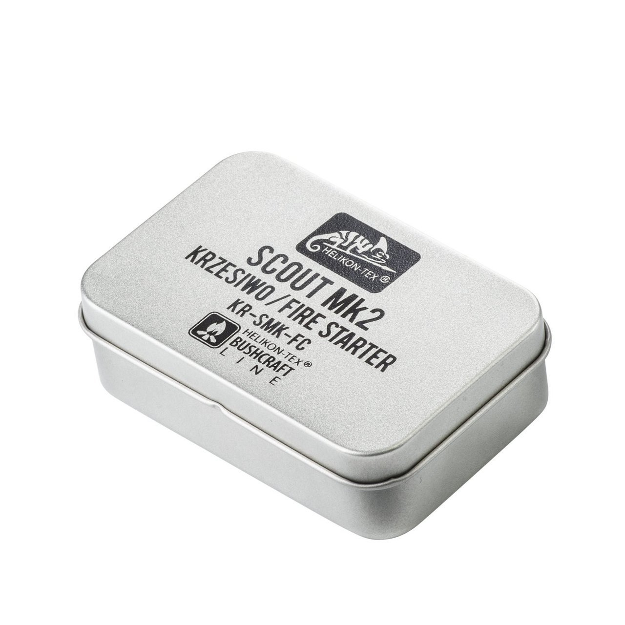 Scout Mk2 Firestarter is a set that allows you to light a fire effectively without using matches or a lighter. The steel box included in the set lets you carry the firestarter and other elements without the risk of losing them. The Bushcraft Line logo printed on it allows you to easily identify the set. The Scout MK2 firestarter is very easy to use. Even a slight movement of the scraper should generate enough sparks to light the cotton wool or birch bark.