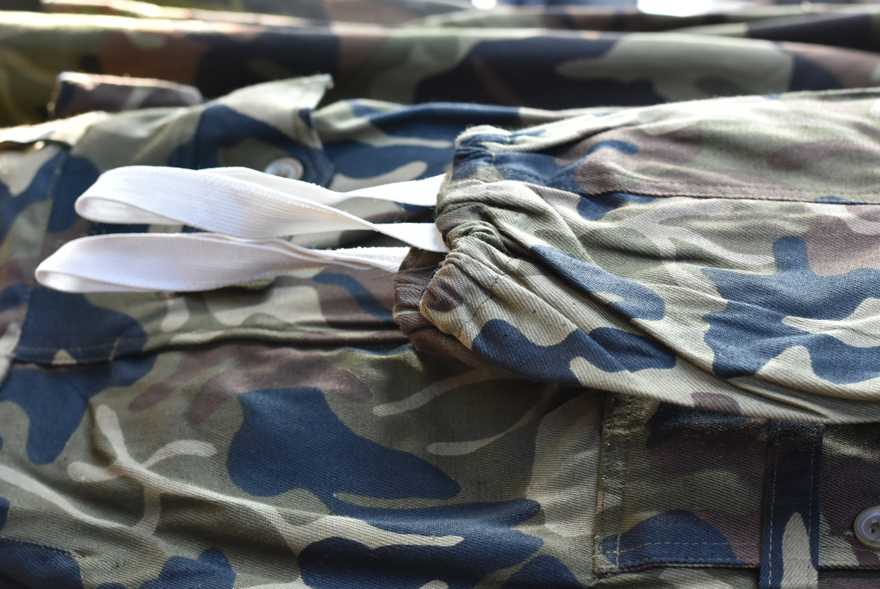 This is a new camouflage set used by the Romanian army in the 1990s. The model is called M90 because it was developed around 1990. It is in perfect condition, the jacket and trousers have matching colors. The trousers have many pockets, including two AK magazine pockets on each leg. This camouflage suit is currently very hard to obtain as it was replaced in 2005 with a new model.