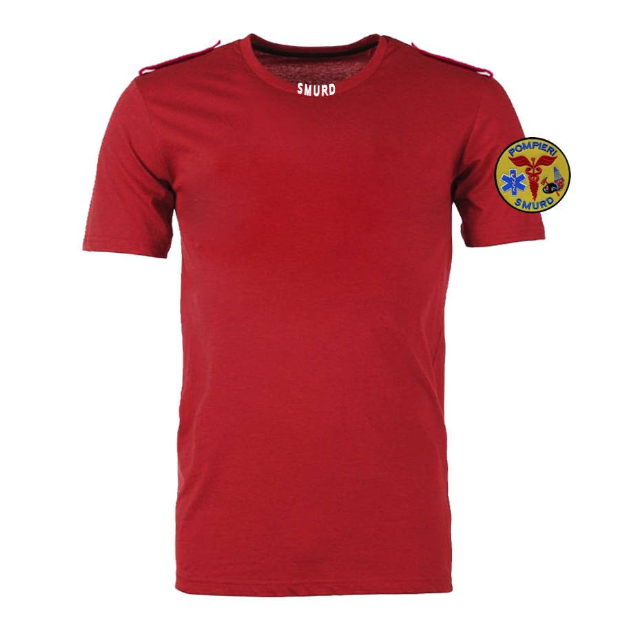 In the back of the shirt is displayed SMURD FIREFIGHTERS, on the chest the typical round SMURD badge and in both arms are the other official insignias (IGSU, heraldic).