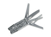 The tool is equipped among other things with a combination pliers, knife blade, bottle opener, can opener, file, saw, scissors and a Philips screwdriver.
