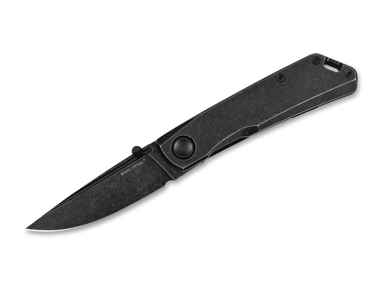 The smaller brother of the Real Steel Luna Boost is a sturdy and equally elegant EDC knife, which is made entirely of stainless steel and has a Black Stonewash finish. The Framelock folder with Böhler K110 blade in Beadblast finish opens either by nail cut or removable thumb pin, while the stainless steel handle offers flexible transport options through the Deep Carry Clip (Tip-up/r) and the safety strap eyelet.