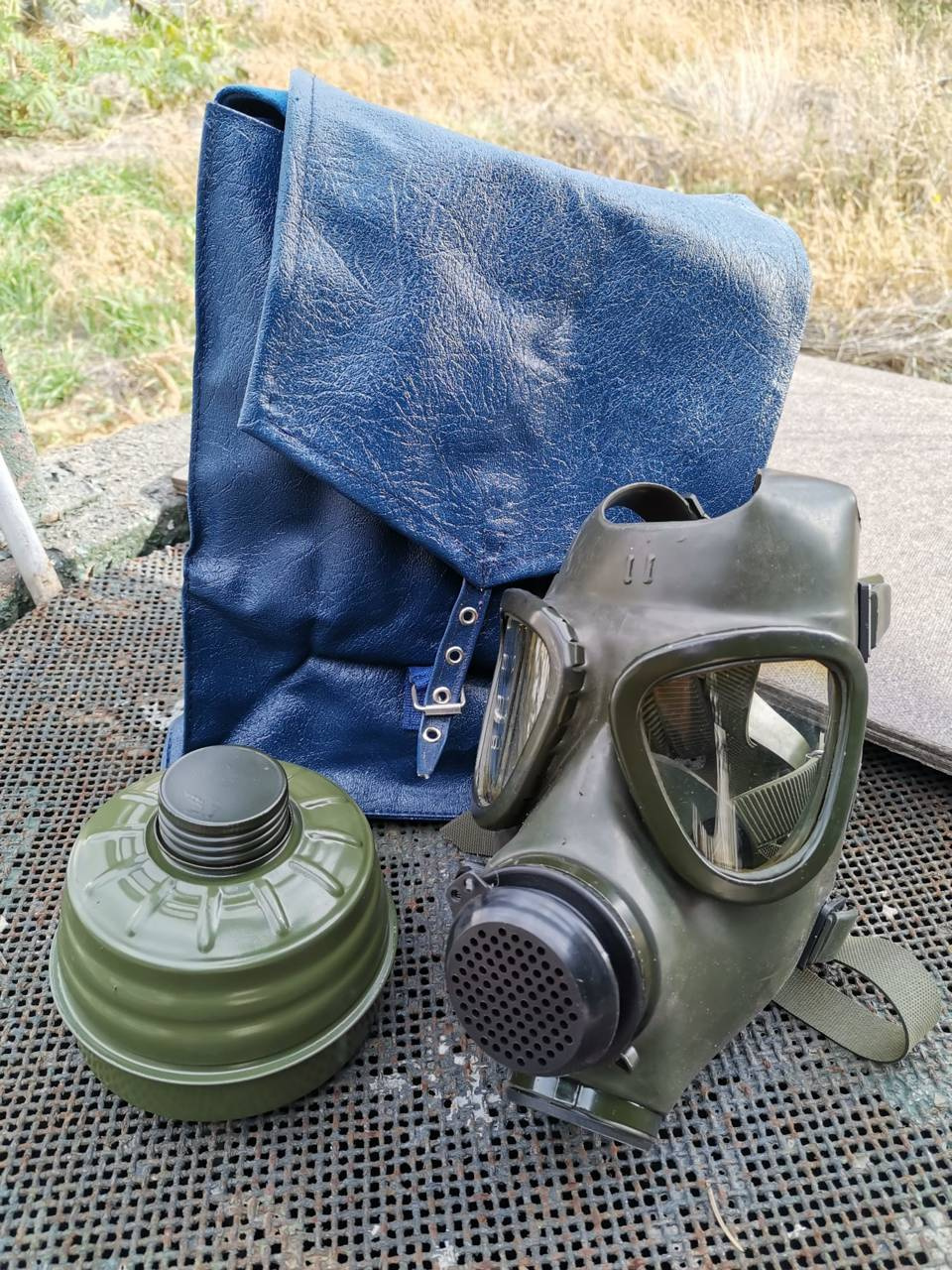 A fantastic Cold War collector's piece, this genuine Romanian Army surplus respirator mask was produced in the 1970s and comes with a GOST-threaded filter and a vinyl haversack.