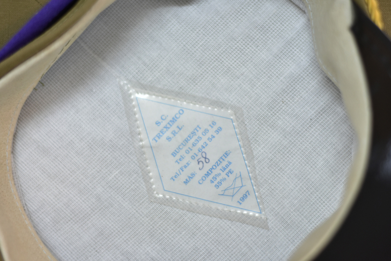 Classic cap for non-commissioned officers within quartermaster units, made according to the standards of military uniforms and Romanian public order institutions. This piece is specific to parade or ceremonial uniforms, highlighting the wearer’s rank and role.