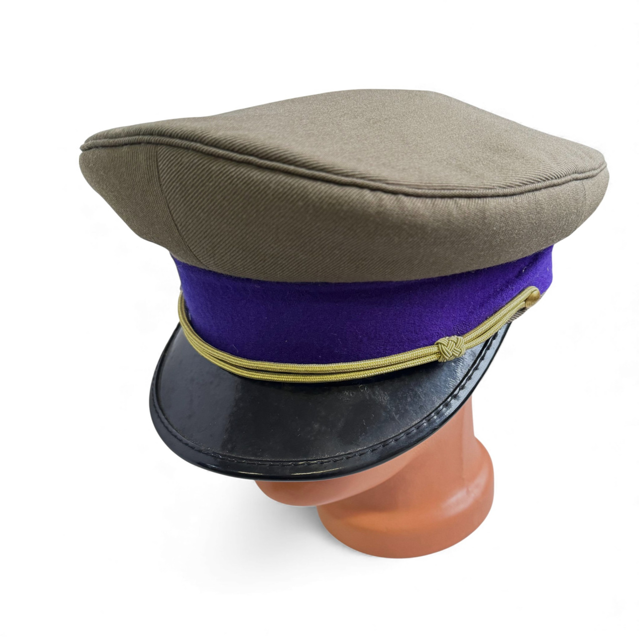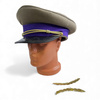 Ornaments: Decorative gold embroidery on the visor and a twisted gold cord, attached with metal side buttons