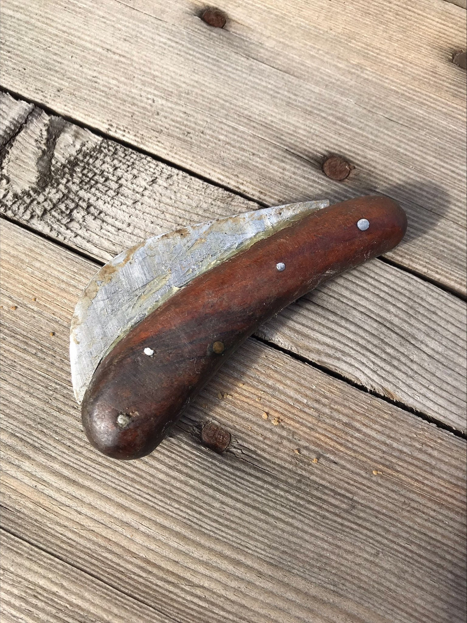 - with elegant riveted wooden handle